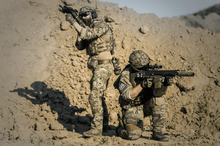 The M224 Motors and the M120 play a crucial role in protecting the outpost, and almost every soldier is equipped with an M4A1 Carbine. A grenade launcher is mounted by several of the soldiers. Both Taliban fighters and local Afghan soldiers are spotted carrying AK-47s.
